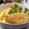 Nicely breaded BBQ Crusted Chicken breast with a perfect match made in heaven macaroni and melted cheddar cheese, all feeling great with seasoned brussels sprouts on the side. Indulge in the delightful flavors of our BBQ Chicken Mac and Cheese, a culinary masterpiece that satisfies your cravings.