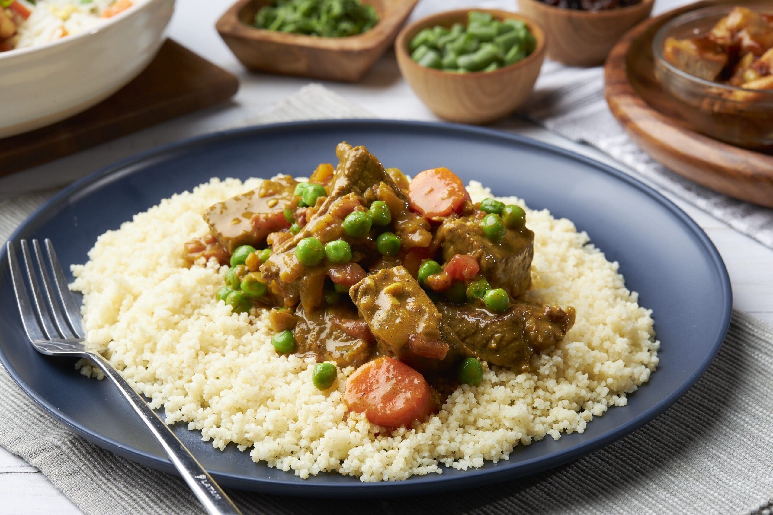Enjoy our Beyond Rogan Josh with Basmati Rice, Peas, and Carrots: plant-based Beyond Meat simmered in a rich, aromatic curry sauce, paired with fragrant basmati rice, sweet peas, and tender carrots. This delicious vegan dish delivers authentic, bold flavors and wholesome ingredients for a satisfying, guilt-free meal.