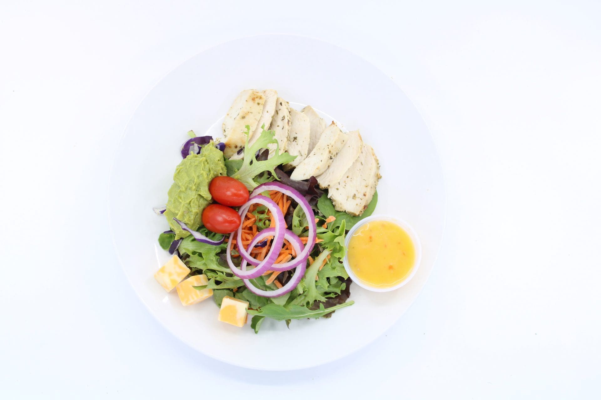 Our Chicken House Salad comes with organic spring mix, shredded mixed cheese, guacamole and made to order free range chicken breast. The best ingredients a house salad can have now offered directly to you. We take great pride in this chicken salad and combine it with the best in the market Italian dressing. We look forward to seeing this selection on your next delivery. Keto Approved