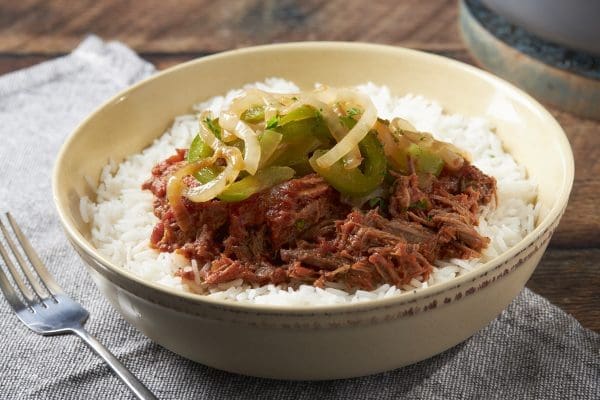 A latin favorite originating from Spain and translated to “old clothes”, we make this in our Prime Meals kitchen to be nutritiously healthy, yet flavors never compromised. This dish is seasoned seared and braised in our house marinara sauce to fork tender. Steps are taken to insure that nothing falls short of a delicious expectation. We then complement this classic dish with a nice portion of our tender and fluffy basmati rice, with just the right amount of flavor and complete energy booster. We don’t stop there, we add a little more nutrition with a bit of colorful seasoned oven baked onions and peppers.