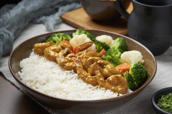 An amazing dish made from scratch with all the right spices to make it so flavorful yet healthy. Pairing this curry shrimp rice bowl meal made complete sense to add basmati rice and a vegetable medley. enjoy this nutritious and delicious curry shrimp meal.