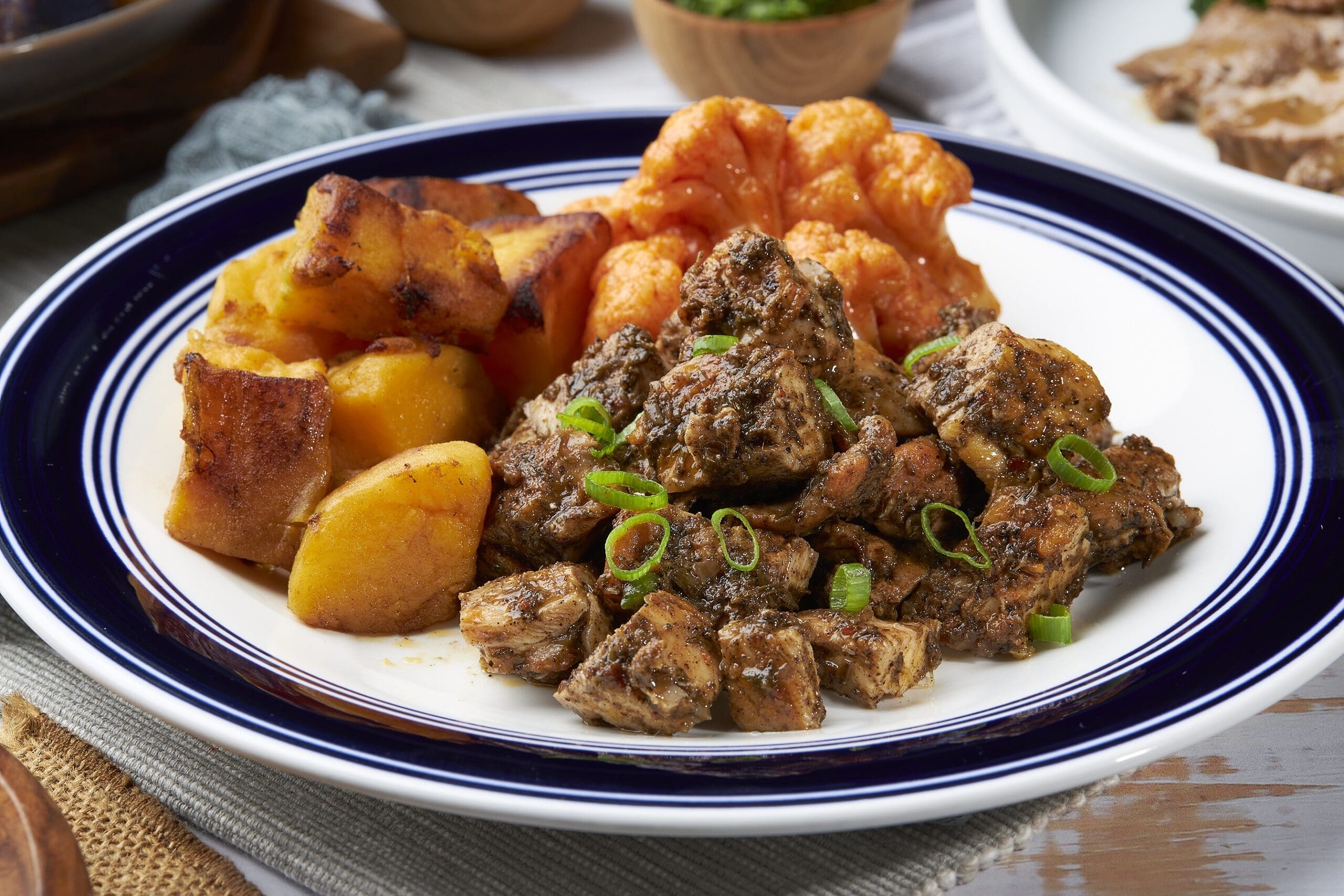 What’s Amazing: *Jamican Seasoned CHKN (Plant Based) seared and baked. *Great tasting vegetables. *Awesome source of plant proteins and carbs.