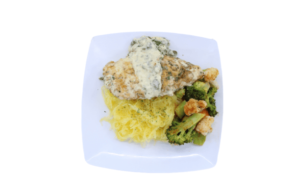 We love creating new flavors with our ever changing meal selections and this one of a kind chicken sensation. We love this keto chicken piccata meal for all the flavors mixed in from the lemon to the capers and the creamy delicious sauce. We’ve combined this low carb chicken piccata meal with our steamed spaghetti squash to keep the carbs off and then added the assortment of keto friendly veggies with light seasoning. Enjoy this keto meal without any guilt.
