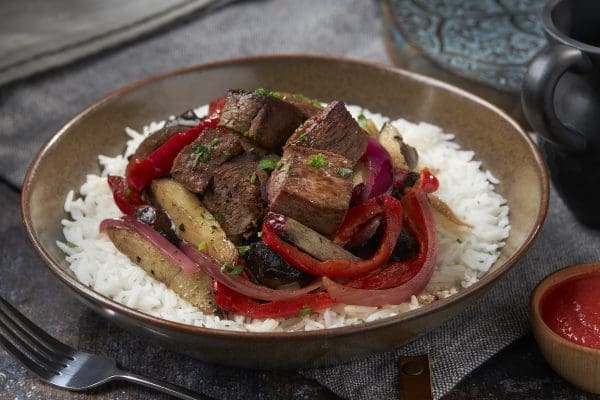 Originating from Peru, Lomo Saltado Portobello and Beefless Tofu Tips is a wonderful addition to your weekly selection.