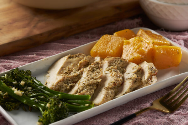 Savor our Cajun Chicken Breast with Butternut Squash and Broccoli Spears: perfectly spiced, juicy chicken breast paired with roasted butternut squash and tender broccoli spears. A delightful balance of smoky, sweet, and earthy flavors, it’s a vibrant and wholesome dish that promises to excite your palate.