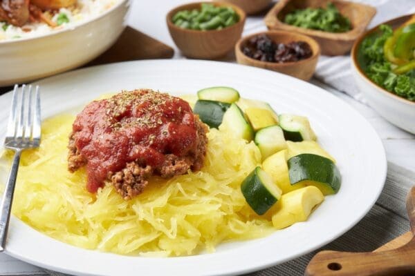 Prime Meals presents our Carb-Less favorite beef bolognese. This lean Angus beef dish is perfectly seasoned for the toughest of palates. It is so cooked with our house marinara, then coupled with our classic spaghetti squash, which has been perfectly steamed and threaded and finally positioned with our spring vegetables (zucchini and yellow Squash). Enjoy all the benefits of a well portioned and balanced paleo beef bolognese meal.