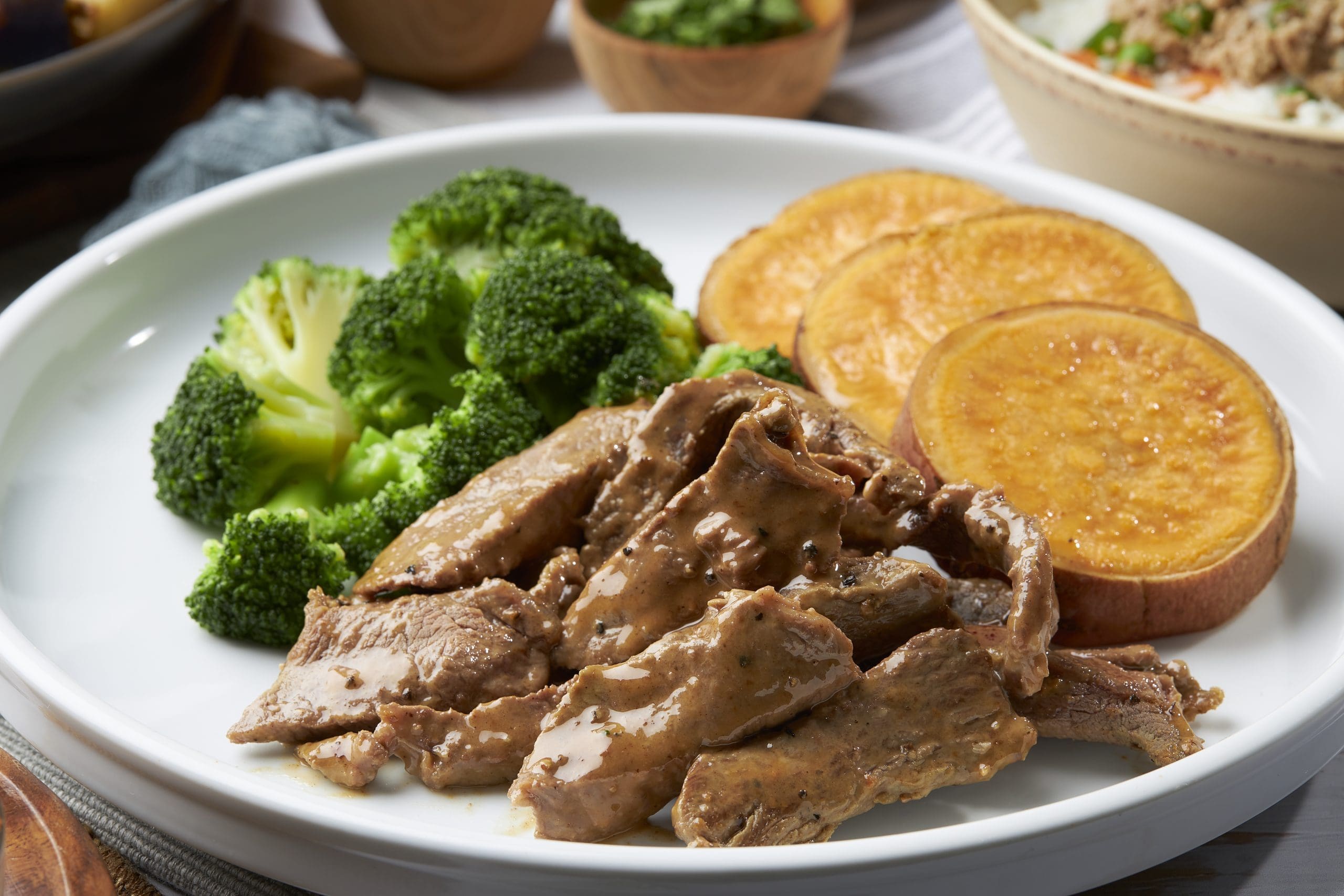 We’ve created a meal to sustain the athletic side. Presenting a meal packed with protein and lots of flavor. Our grass fed beef is sliced thin, seasoned, then left overnight to naturally absorb all that we worked hard to combine. Then we sear these delicious slices to perfection with a bit our house made steak sauce and finally we toss in our fresh broccoli to provide the right nutrients needed in a well prepared meal. Finally we side our paleo beef and broccoli meal with a wonderfully steamed sweet potato for the perfect complex carb. We know this will be a stable meal in your weekly nutrition.