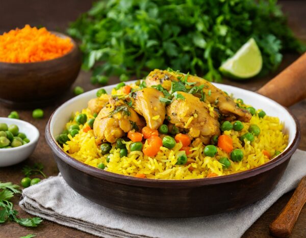 The chimichurri chicken with yellow rice mixed with peas and carrots is a delightful culinary experience. The chicken, bursting with zesty chimichurri flavors, pairs perfectly with the fragrant, nutritious yellow rice. The addition of peas and carrots adds a sweet crunch, making this meal both delicious and wholesome.
