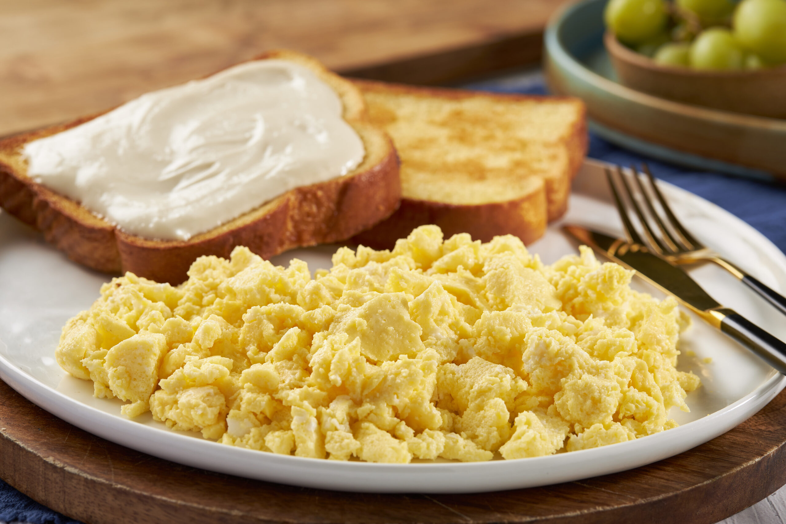 Savor the irresistible combination of a healthy tres leches french toast, soaked in a creamy blend of three milks, and accompanied by scrambled eggs rich in protein. This delectable and nutritious breakfast is a delightful way to start your day on a wholesome note.